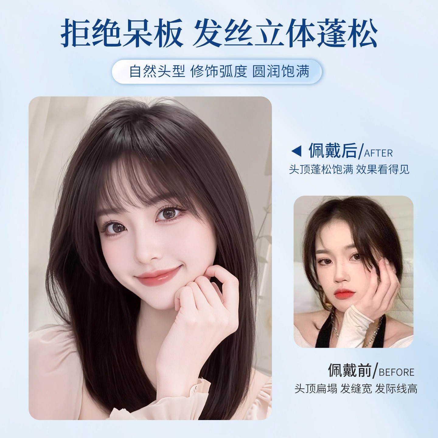 假发女片头顶真发增发量蓬松高颅顶遮白发自然递针刘海补发片遮盖