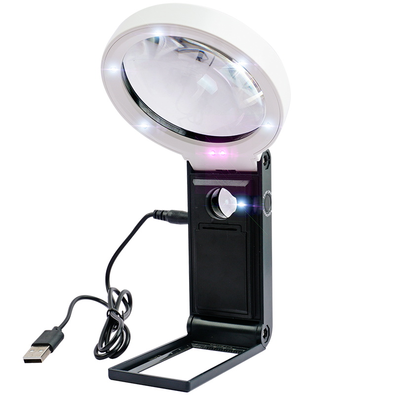 手持式放大镜高清老人阅读看手机药瓶小字带led灯可插电鉴定钱币
