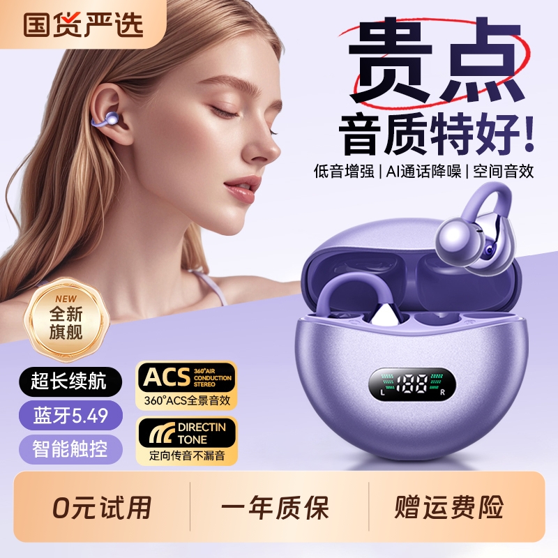 蓝牙耳机耳夹式2025新款骨传导不入耳无线挂耳式运动跑步超长续航