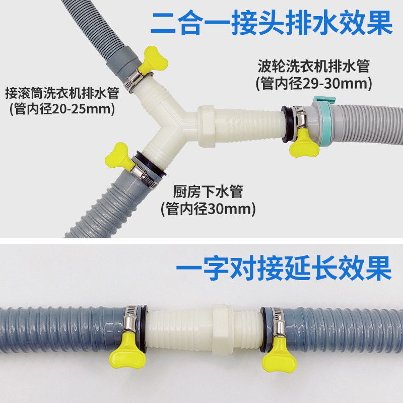 洗衣机排水管二合一Y型三头通下水道地漏一拖二加长延长出水软管