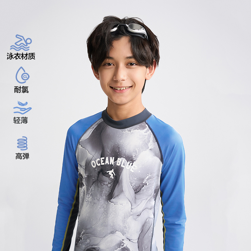 爱慕儿童墨韵海风男孩防晒耐氯长袖五分裤连体泳衣AK267H251