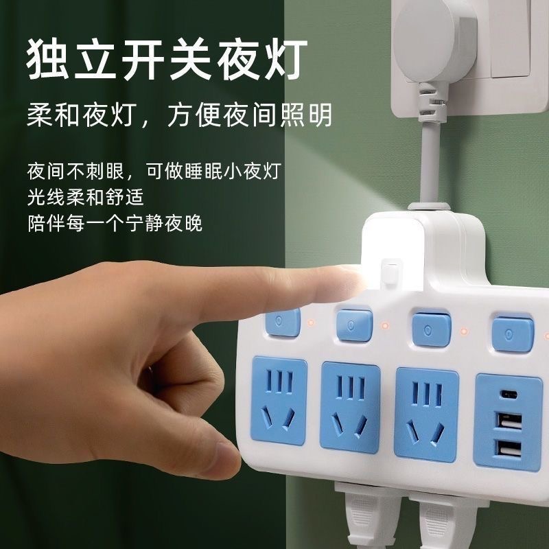 公午智能转换器多功能一转多夜灯插座电源分控开关USB插排插线板