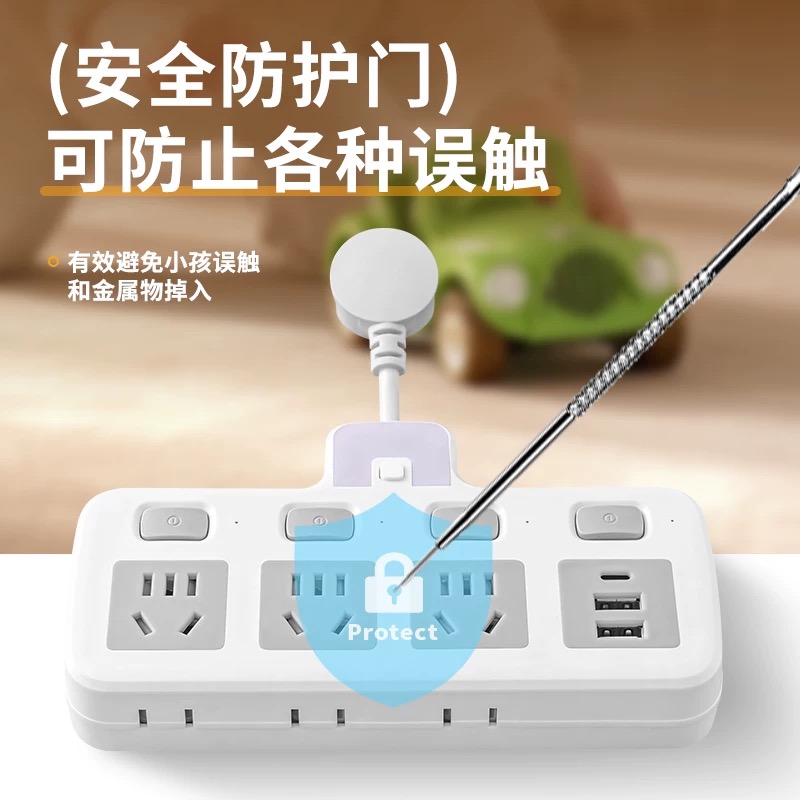 公午家用转换器多功能带USB排插转换插头插线板纯铜插座插排桌面