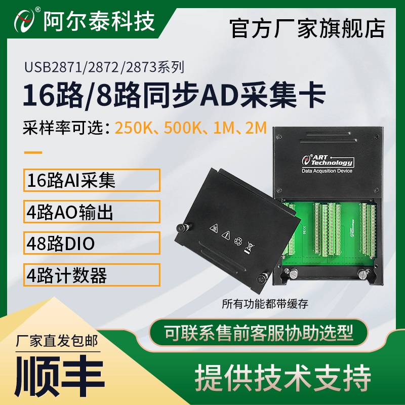 USB2871/2872同步AD采集卡2M采集频率16位16路AD同步模拟信号采集