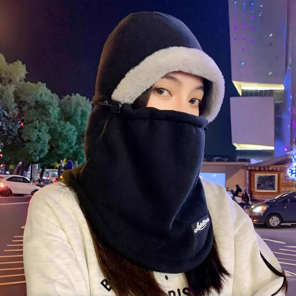 冬季保暖头套帽子女骑行电动车围脖一体面罩防风防寒围巾加绒可戴