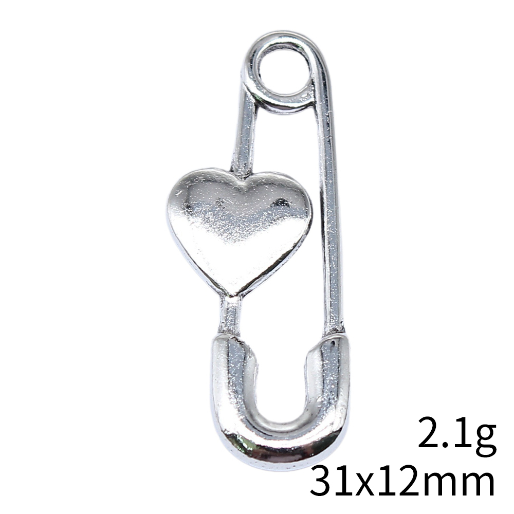 10个/包 31x12mm 多色 锌合金 爱心别针吊坠 ABD-C15714