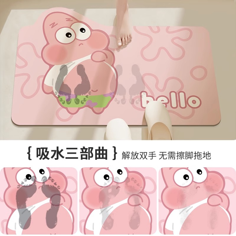 浴室吸水地垫卫生间地毯硅藻泥速干防滑卡通厕所门口脚垫可爱卫浴