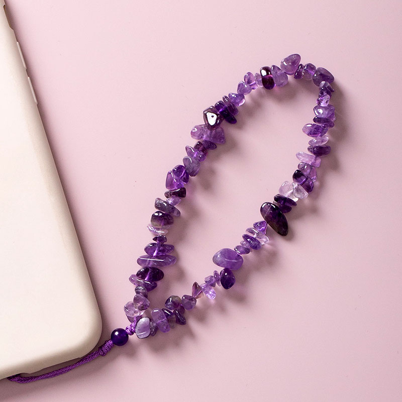 紫水晶手机链挂绳挂件女款长包钥匙扣吊坠指环手腕绳玉石腕带防丢