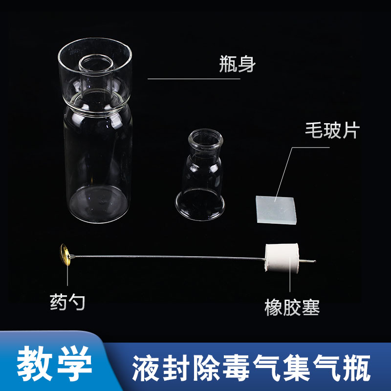 液封除毒气集气瓶250ml带密封毛玻片玻璃除毒瓶长颈安全瓶初高中化学实验器材初中教学仪器中学
