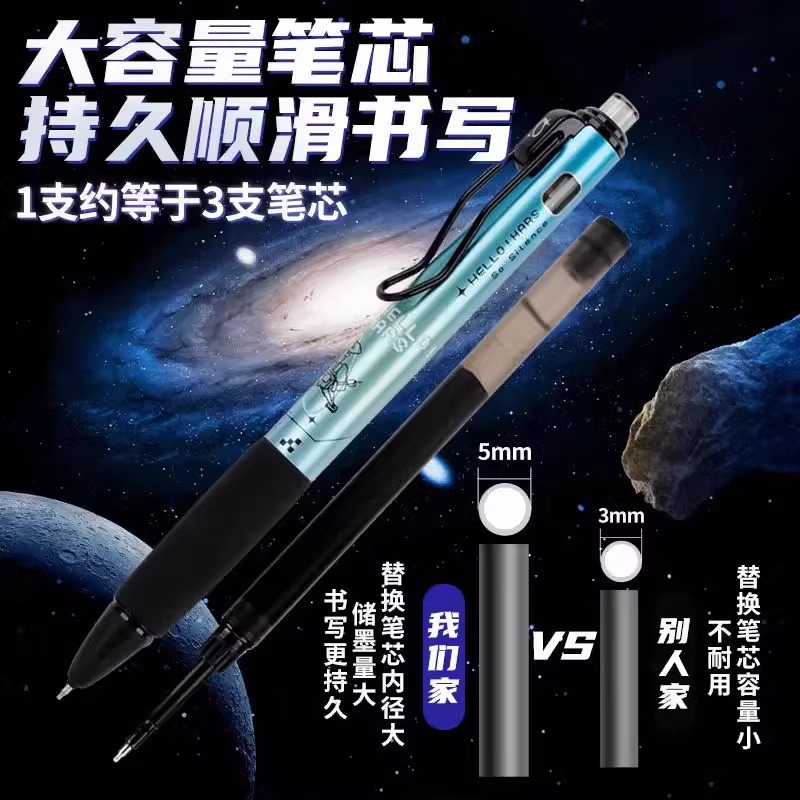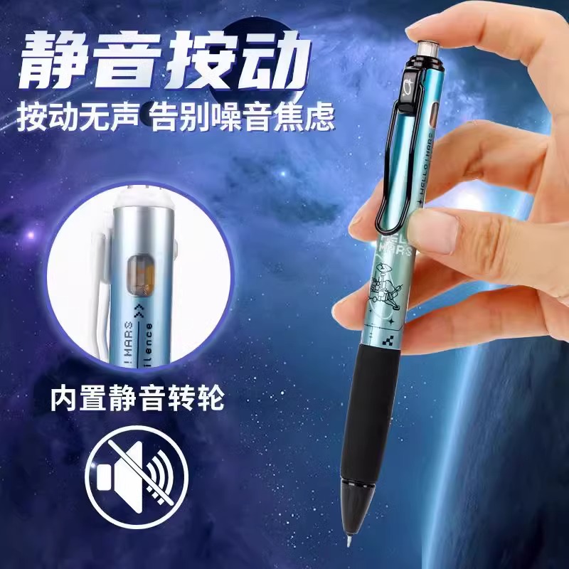 晨光你好火星限定静音按动中性笔好静音ST尖锥刷题笔学生考试用碳素速干水笔高颜值办公用签字笔芯K3305黑0.5