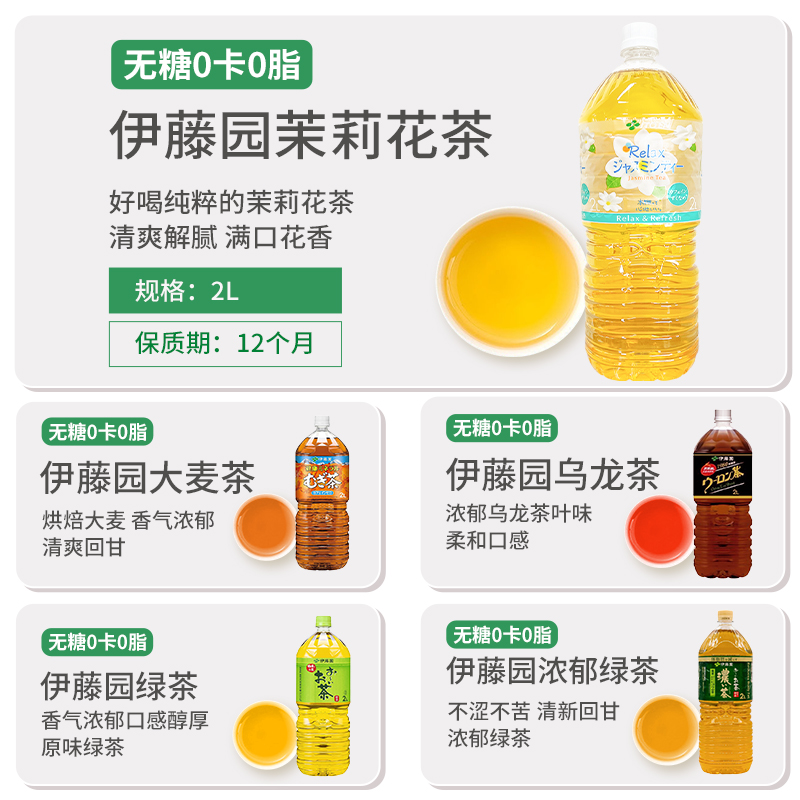 日本进口伊藤园茉莉花茶大麦茶乌龙茶绿茶大瓶桶装2L期饮料奶茶