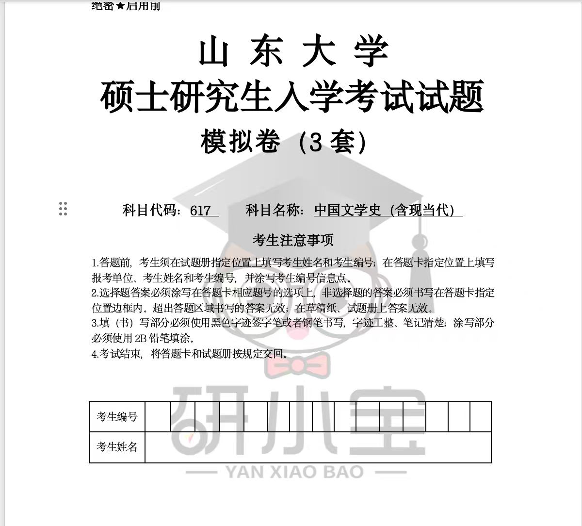 山东大学617中国文学史(含现当代)和813中国语言文学专业综合