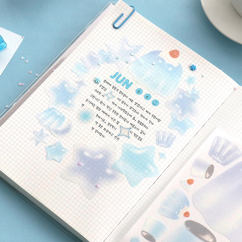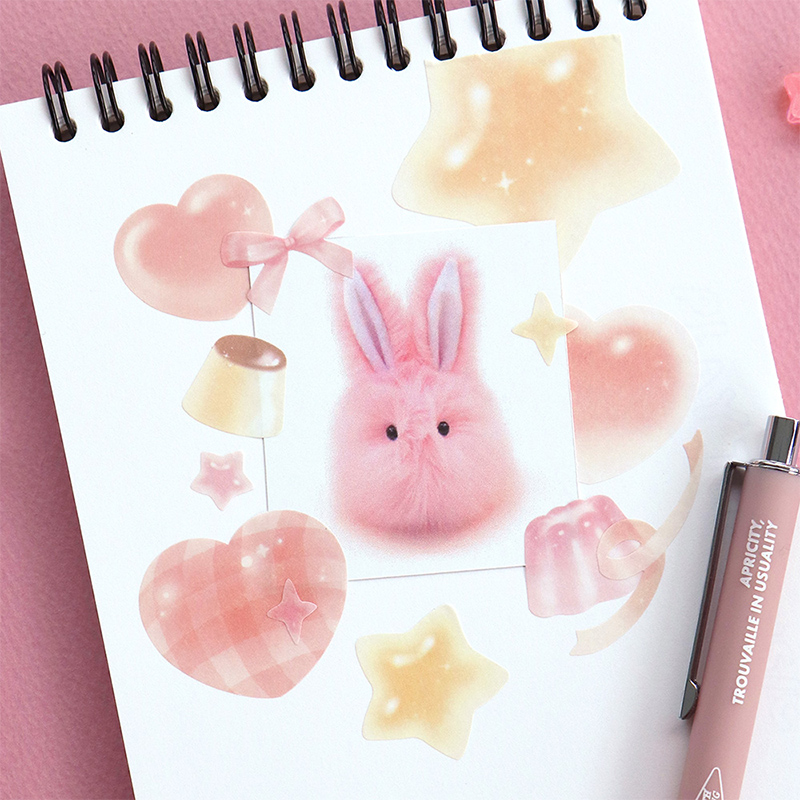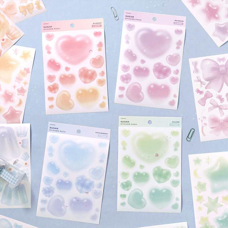 韩国ICONIC糖果色手帐创意装饰贴纸套装可书写桃子葡萄蓝莓青柠主题色手帐相册贺卡装饰DIY星星桃心蝴蝶结