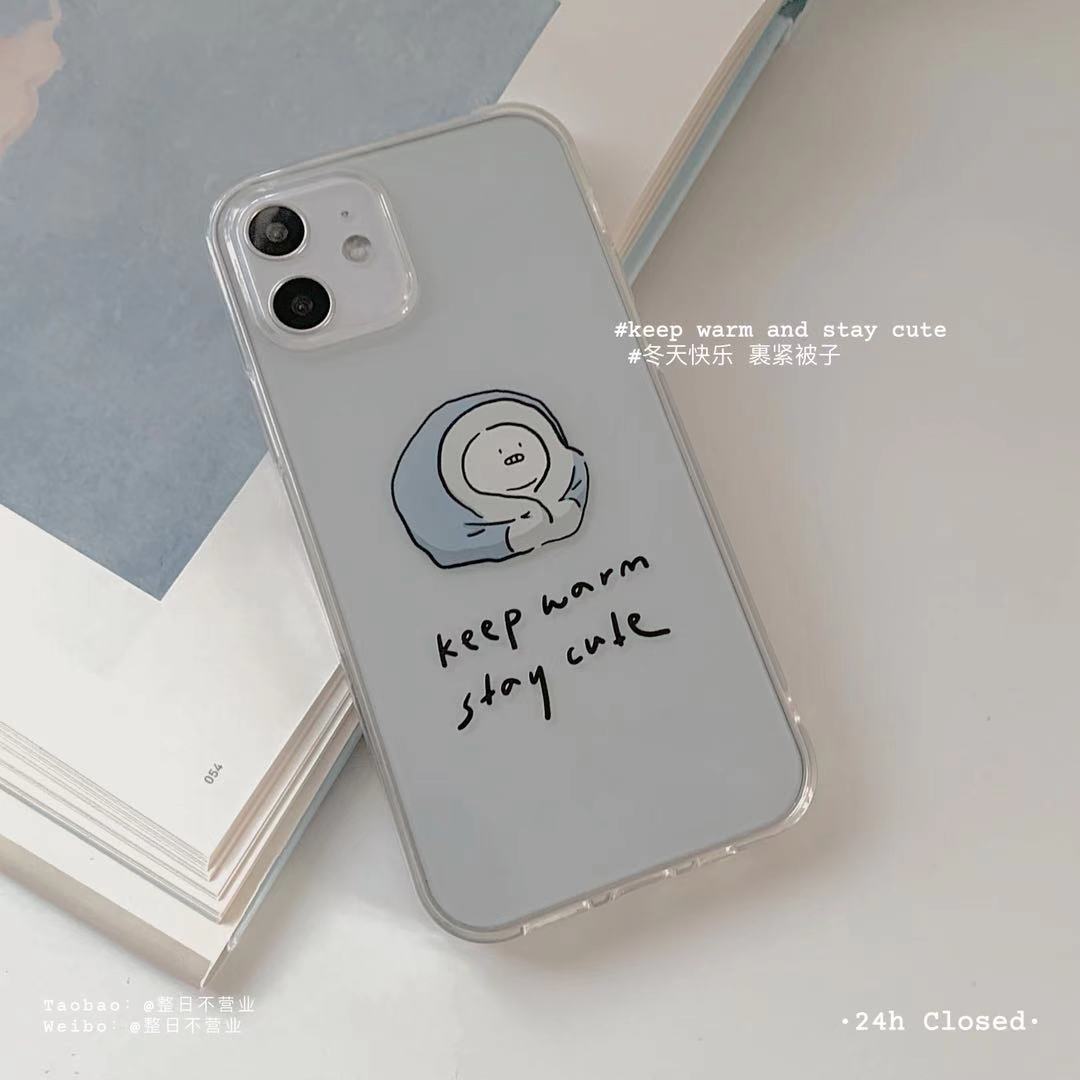 整日不营业原创「裹被子猪猪」ins风透明适用于17promax可爱手机壳全包16promax苹果硅胶15pro支架保护套软壳