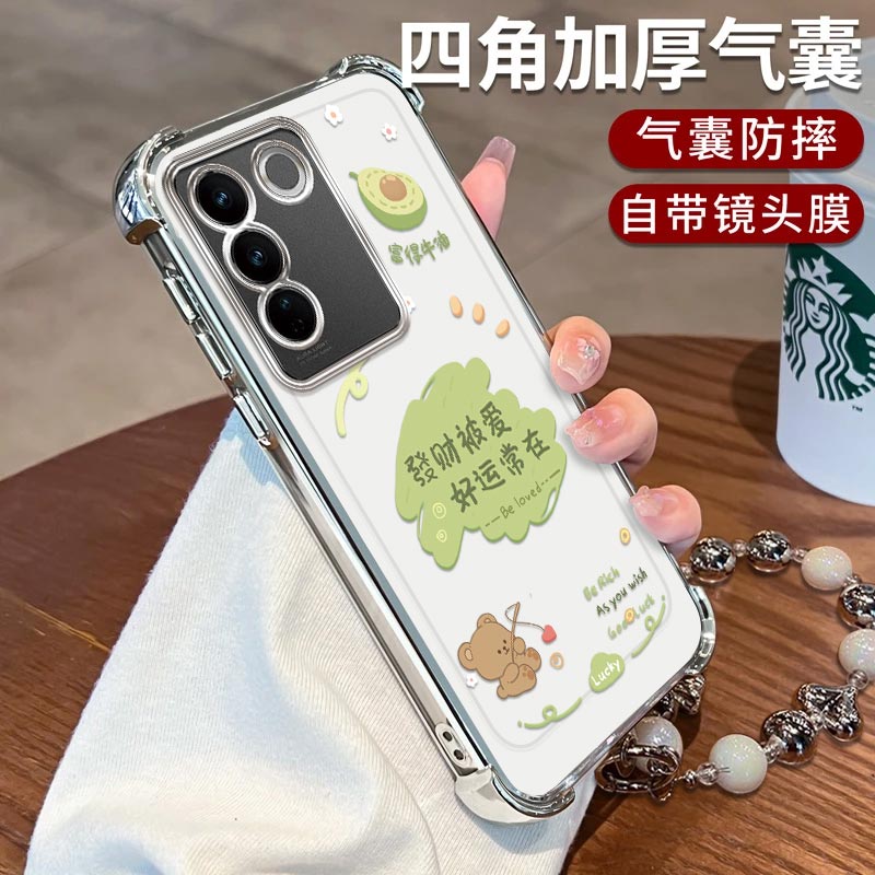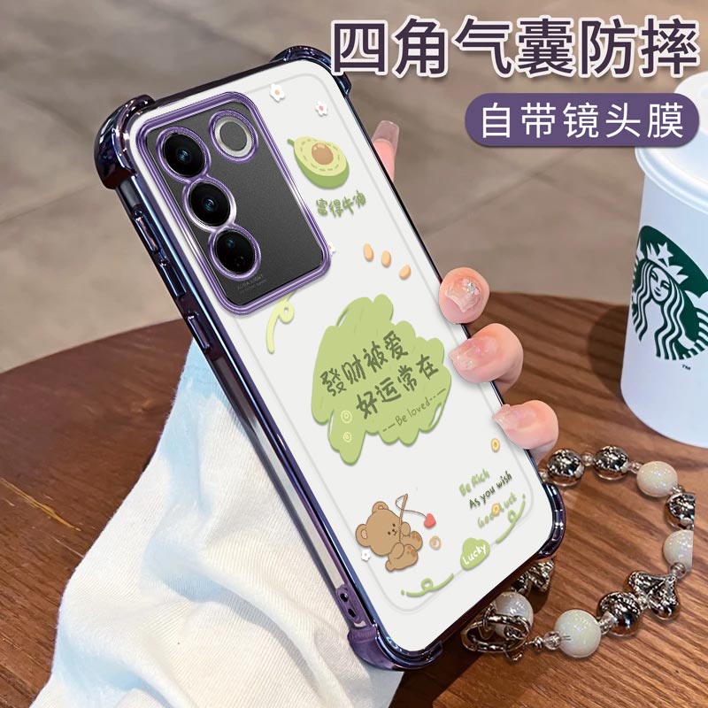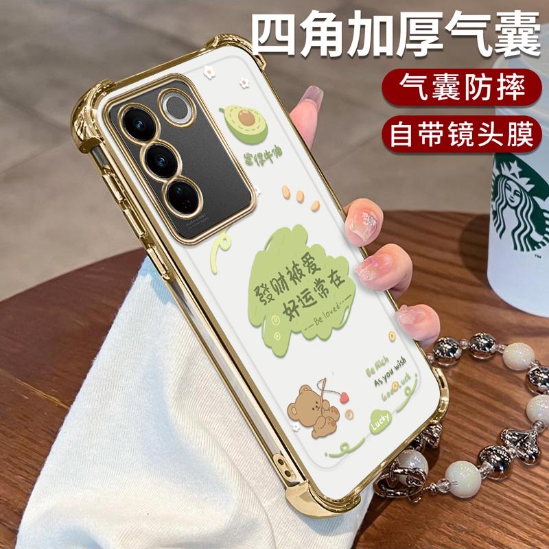 适用VIVOS16手机壳发财被爱电镀四角防摔vivoS16Pro简约硅胶气囊全包vivoS16e高颜值手链女款新款保护套