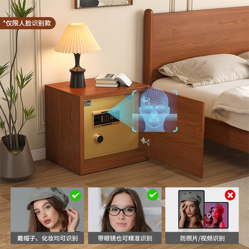 虎牌实木隐形保险柜2025新款卧室中古风卡门柜保险箱一体家用防盗客厅靠墙wifi人脸带指纹密码箱智能储物柜子