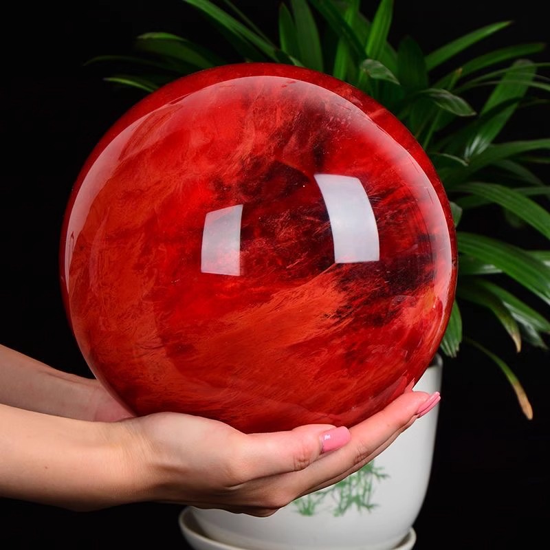 lisv天然红水晶球摆件鸿运当头招财客厅玄关办公室红色水晶球送礼