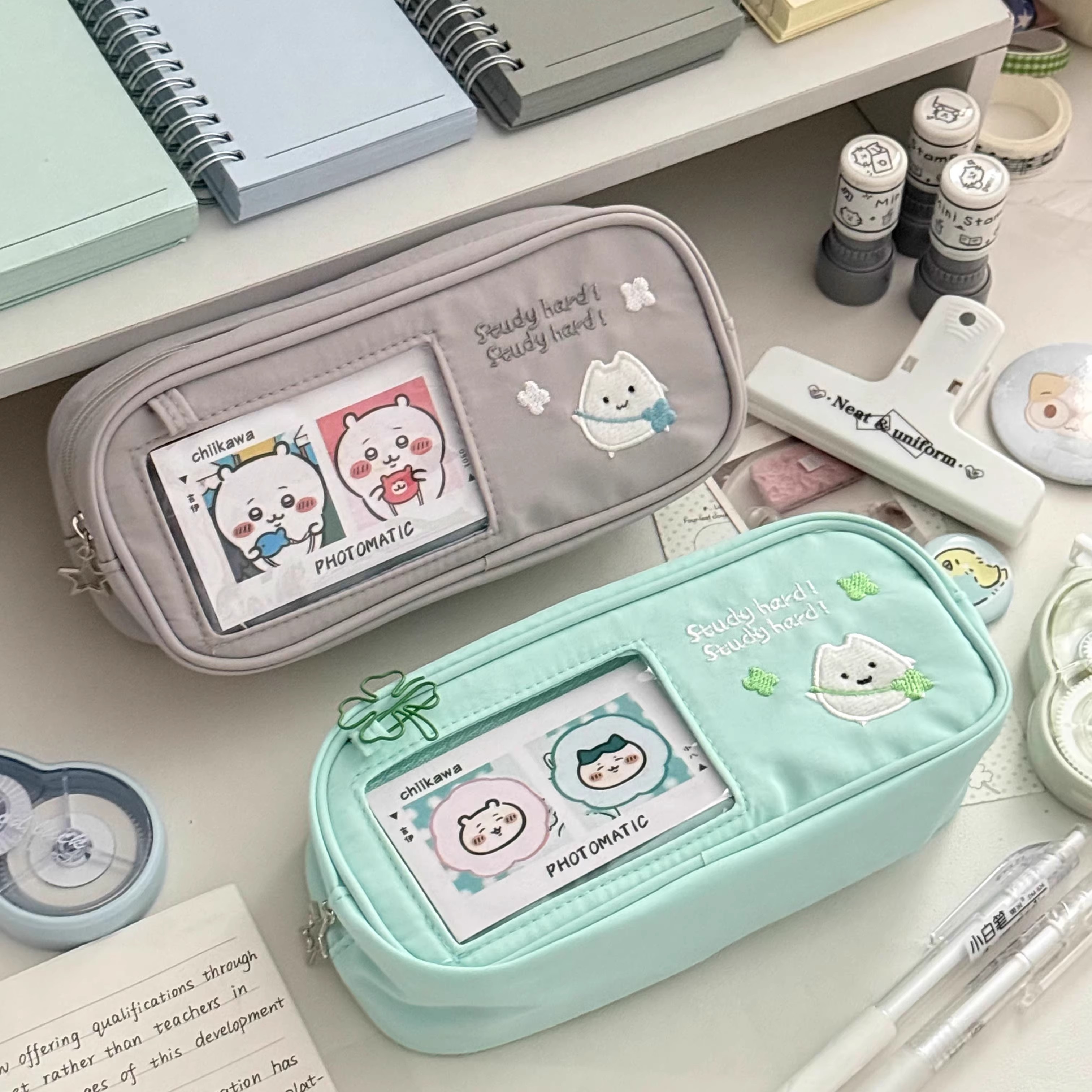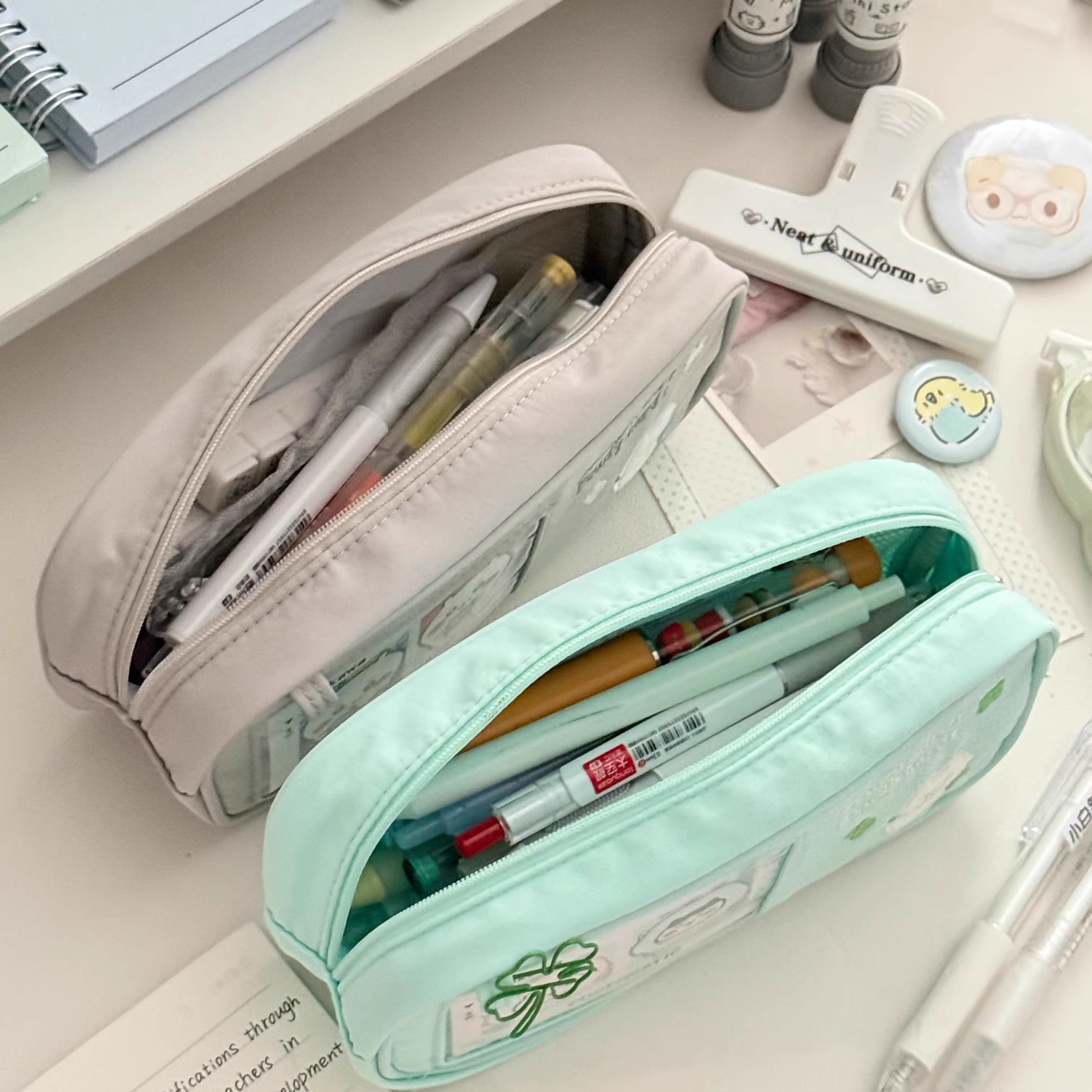 可爱四叶草猫咪刺绣笔袋可视窗高颜值痛包ins风大容量文具收纳袋