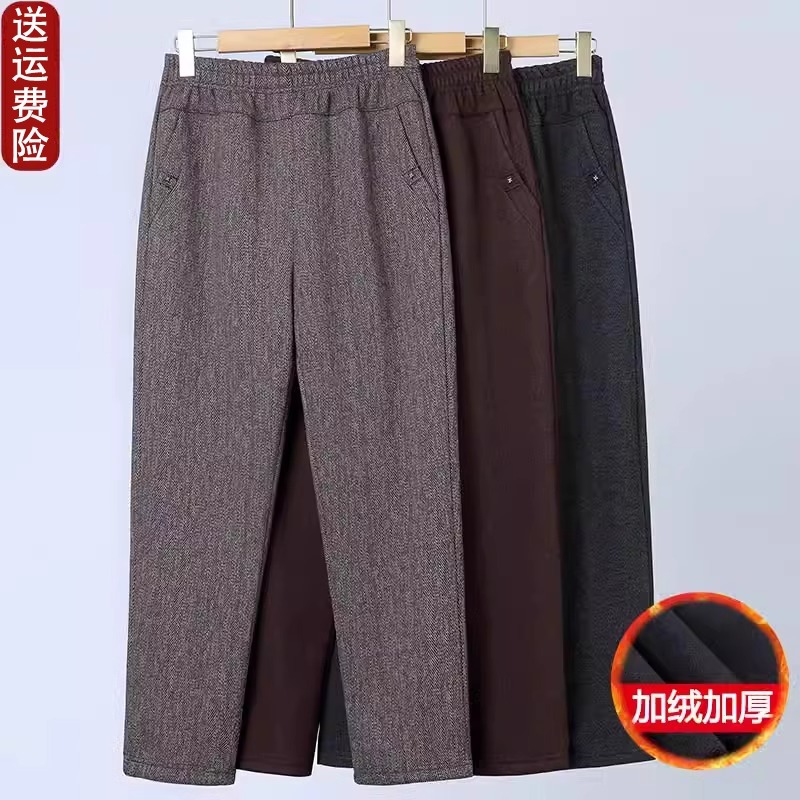 中年妈妈秋冬款小个子外穿加绒加厚老太太中老年人奶奶保暖裤女装
