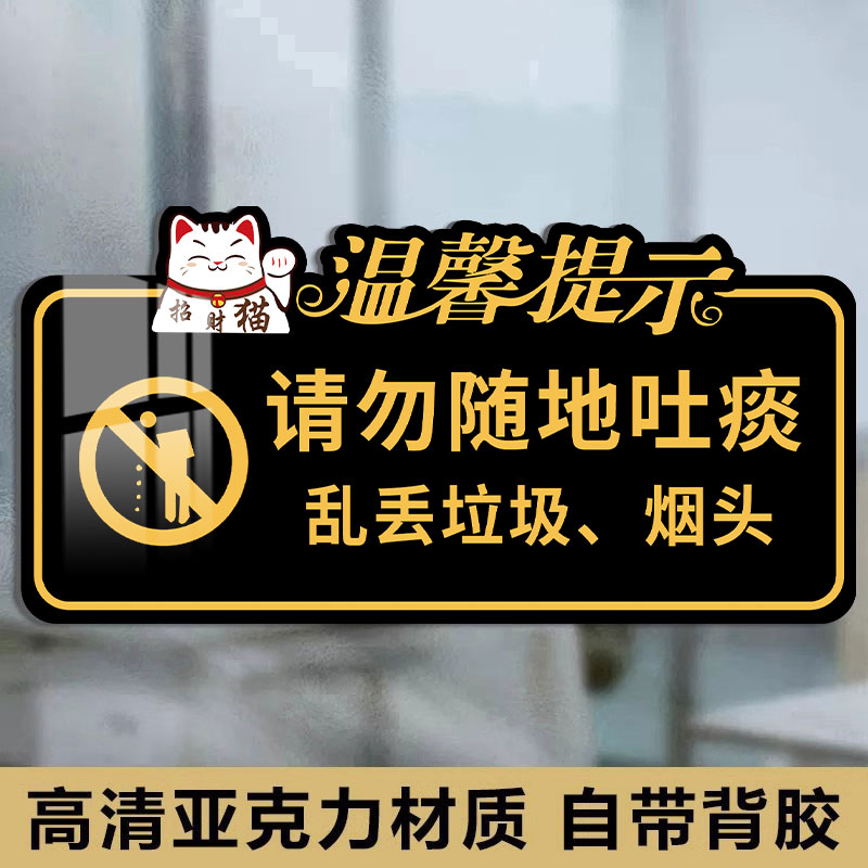 请勿随地吐痰提示牌请勿乱扔垃圾乱丢烟头告示牌警示牌标识贴纸爱护环境人人有责温馨提示牌标语注意卫生素质