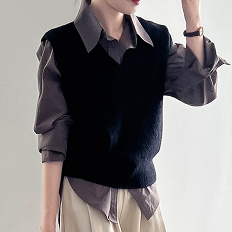 XB真维斯女装针织衫马甲 2025春季新款纯色温柔系V领显瘦套头上衣