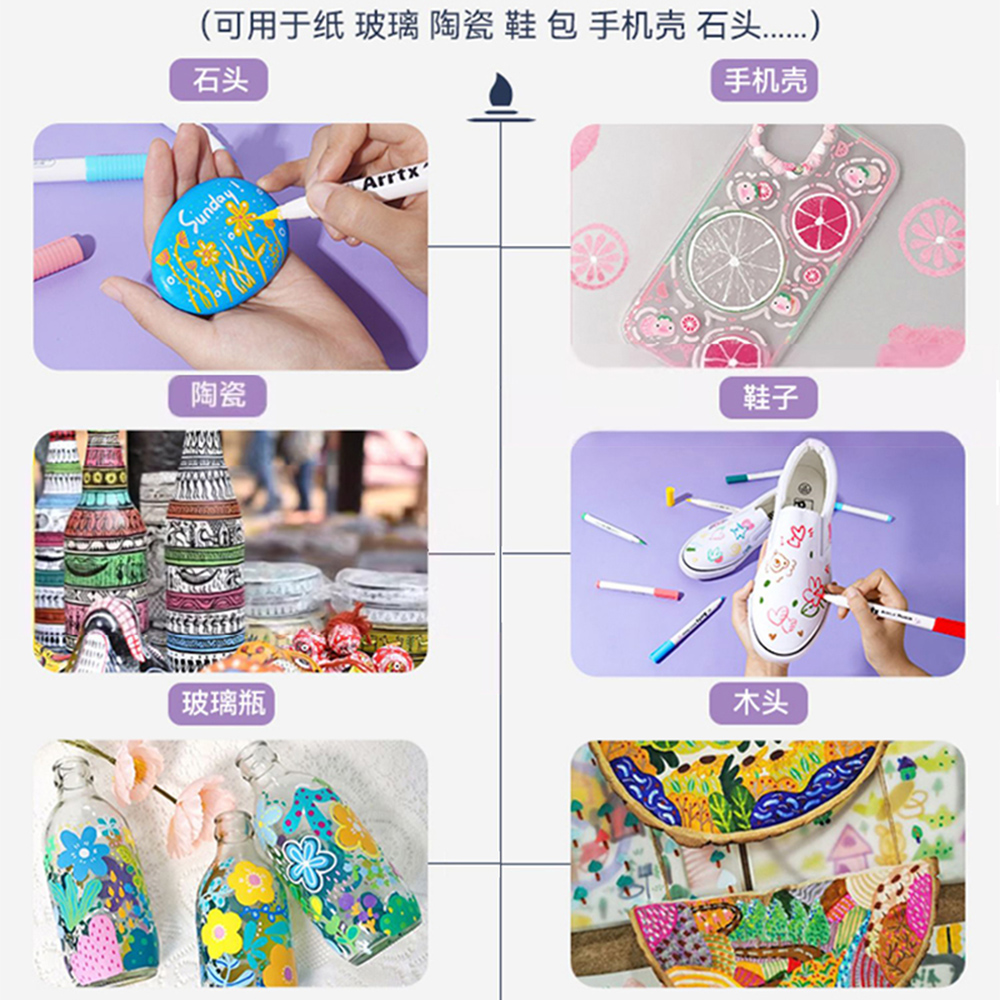 Arrtx阿泰诗软头丙烯马克笔绝绝紫A款B款套装60色防水不透可叠色美术绘画手绘咕卡笔DIY绘画衣服手机壳画鞋子