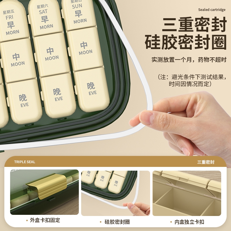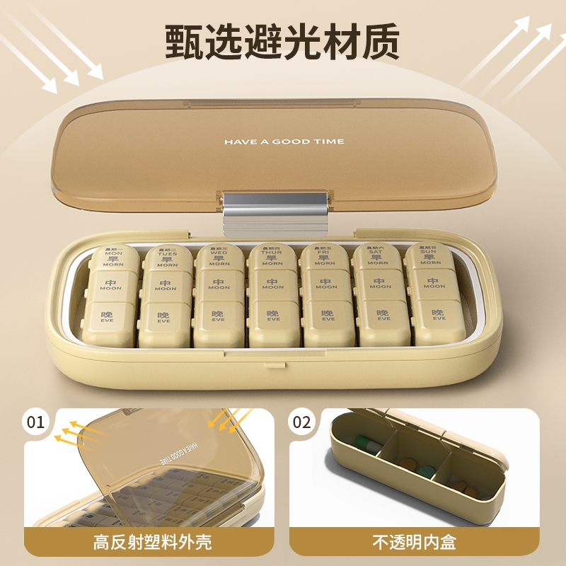 药盒便携式一日三餐一周大容量分装盒器随身药物七天吃药提醒避光