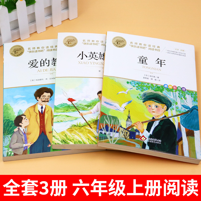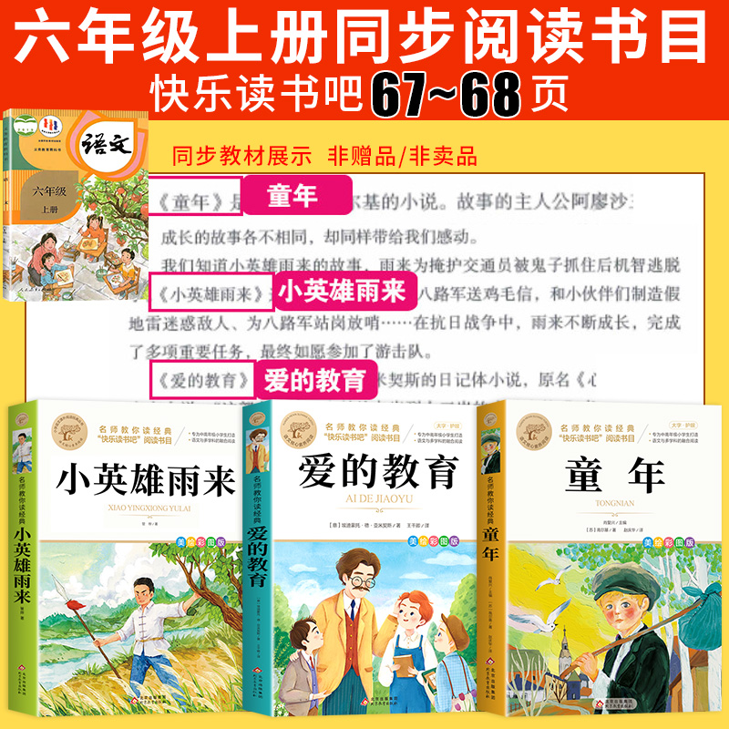 全套3册童年爱的教育和小英雄雨来六年级上册必读正版的课外书高尔基快乐读书吧六上阅读书籍鲁滨逊漂流记下册书目E试卷故事经典