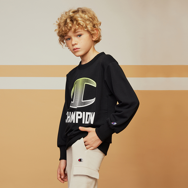 Champion冠军大小男童25秋季LOGO标简约校园运动微弹圆领卫衣外套