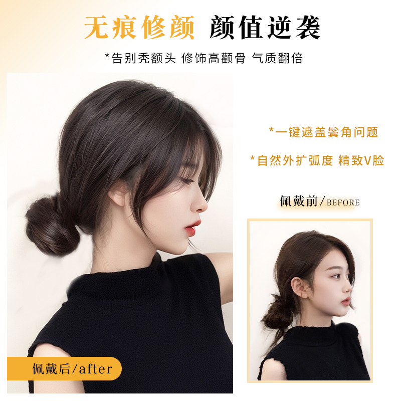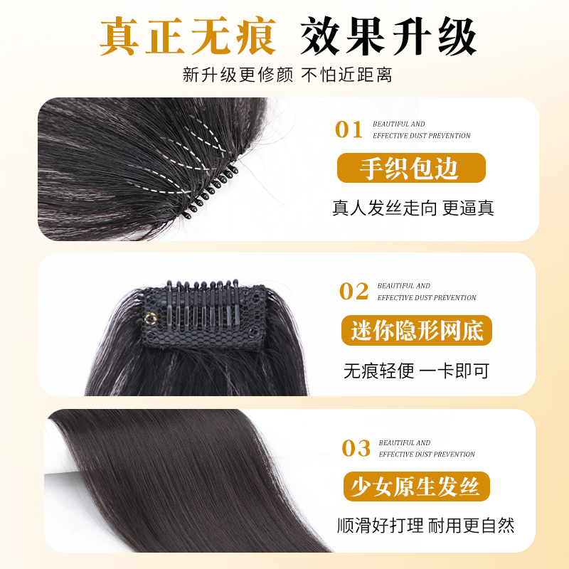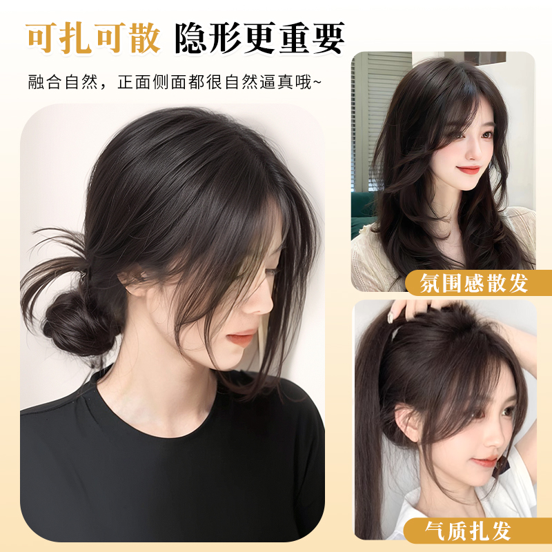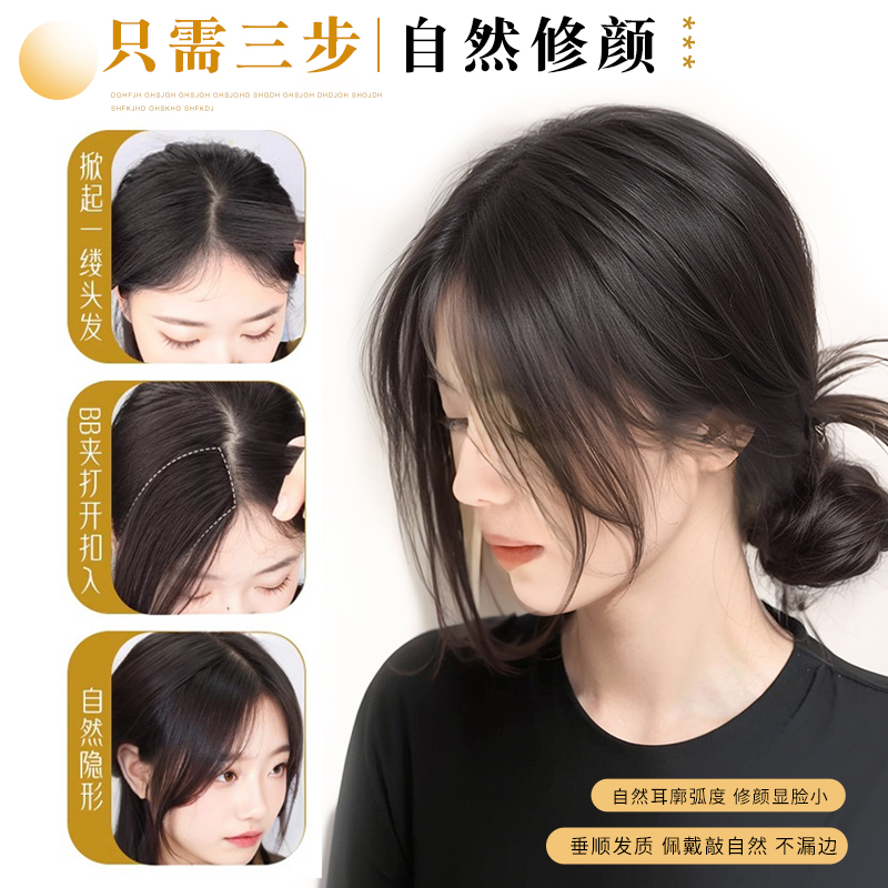 八字刘海假发片女全真发修颜增发量中分刘海自然前额发际线假刘海
