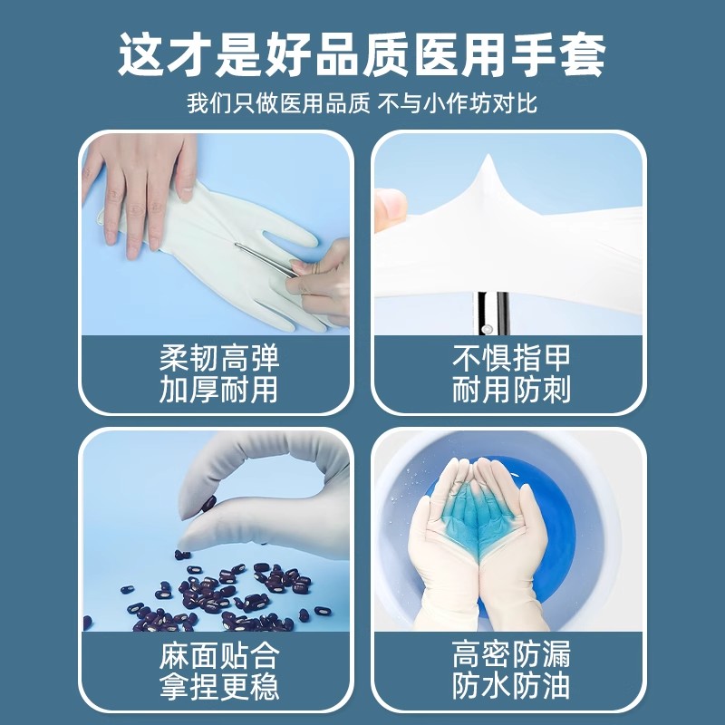 艾享医用丁腈手套一次性加厚医疗外科手术检查食品级专用乳胶橡胶