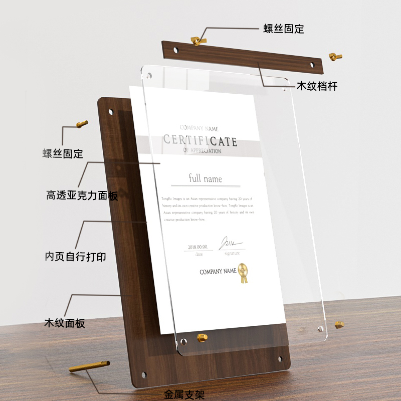 A4荣誉证书框高档实木质奖状证件裱框专利水晶玻璃摆台授权书优秀员工获奖牌匾定制聘书任命书亚克力相框简约