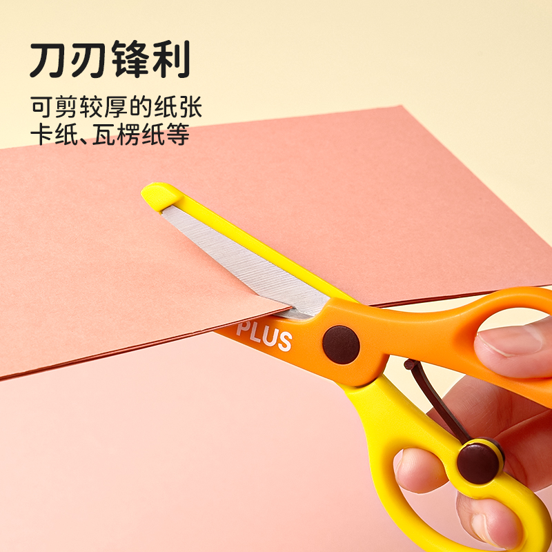 日本PLUS普乐士儿童剪刀圆头小学生安全剪刀做手工不易伤手幼儿园用随身便携式塑料包裹小剪子可爱动物剪纸刀