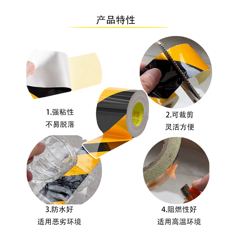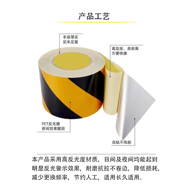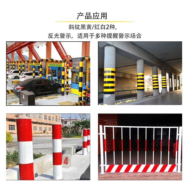 黑黄红白安全警示反光贴胶带反光膜高亮斜纹贴条纸地贴条夜间交通标识防撞反光膜工地护栏防水安全标识贴纸