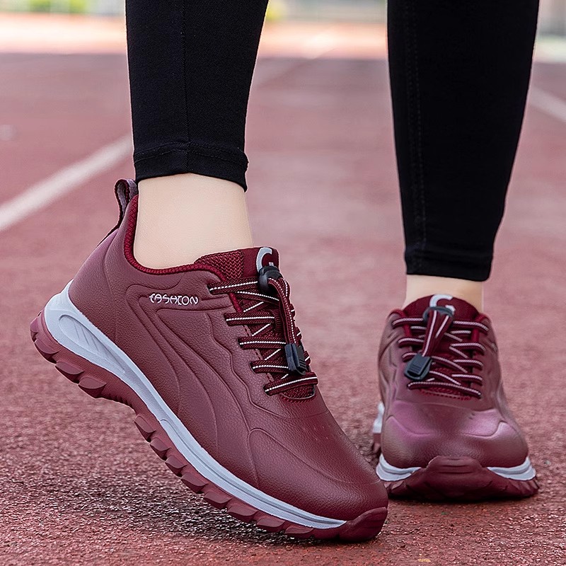 寿足力老人健步鞋秋冬新款皮面防水防滑软底女妈妈鞋中老年运动鞋