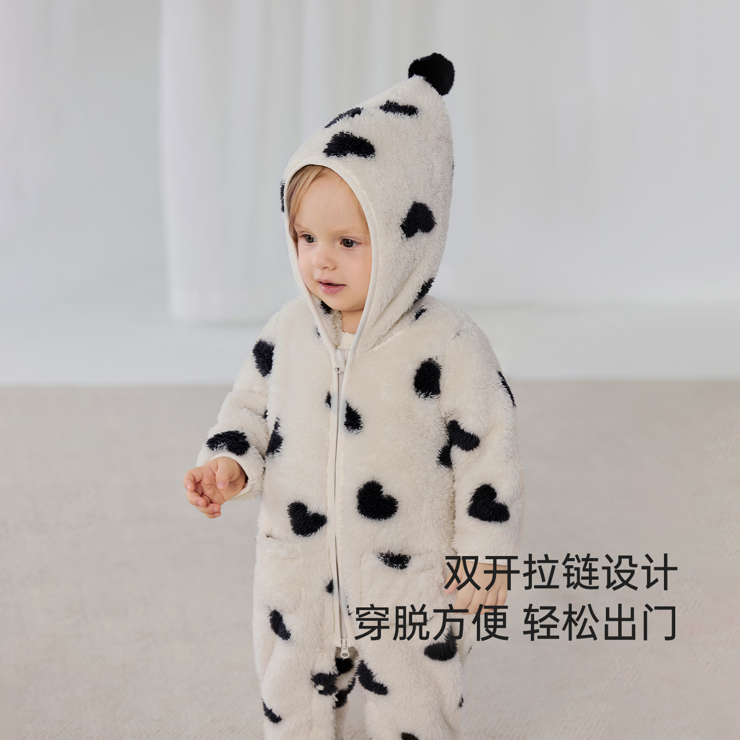 babylove宝宝毛绒连体衣秋冬季舒棉绒婴儿保暖哈衣爬服连帽外出服