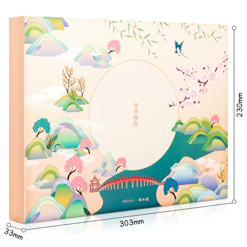 得力SZ021颐和园手帐本套装-杏林春燕-32K硬面手帐本国风手账套装