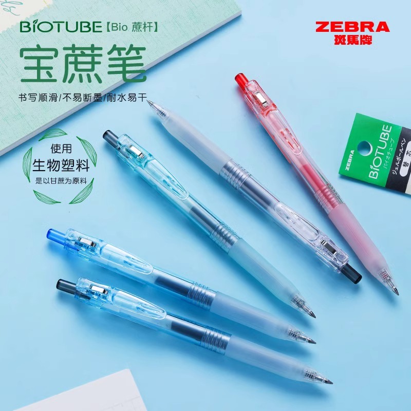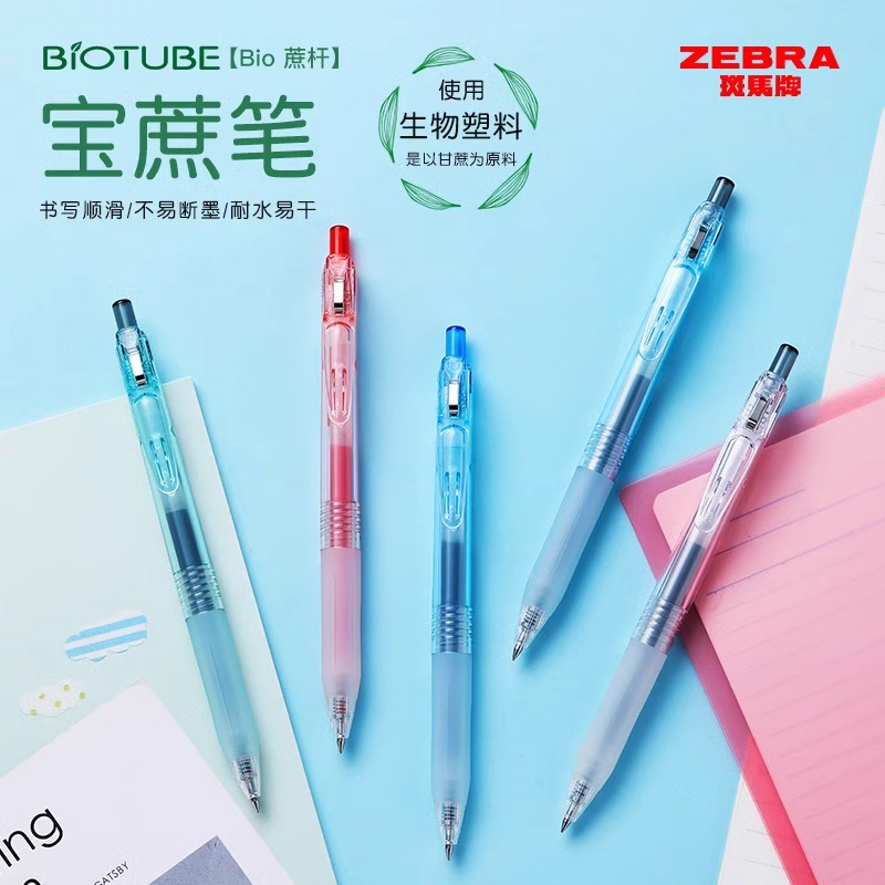 日本ZEBRA斑马中性笔BIO宝蔗笔JJ15透明高颜值BIOTUBE甘蔗可降解环保笔子弹头大容量按动水笔可换JF替芯0.5