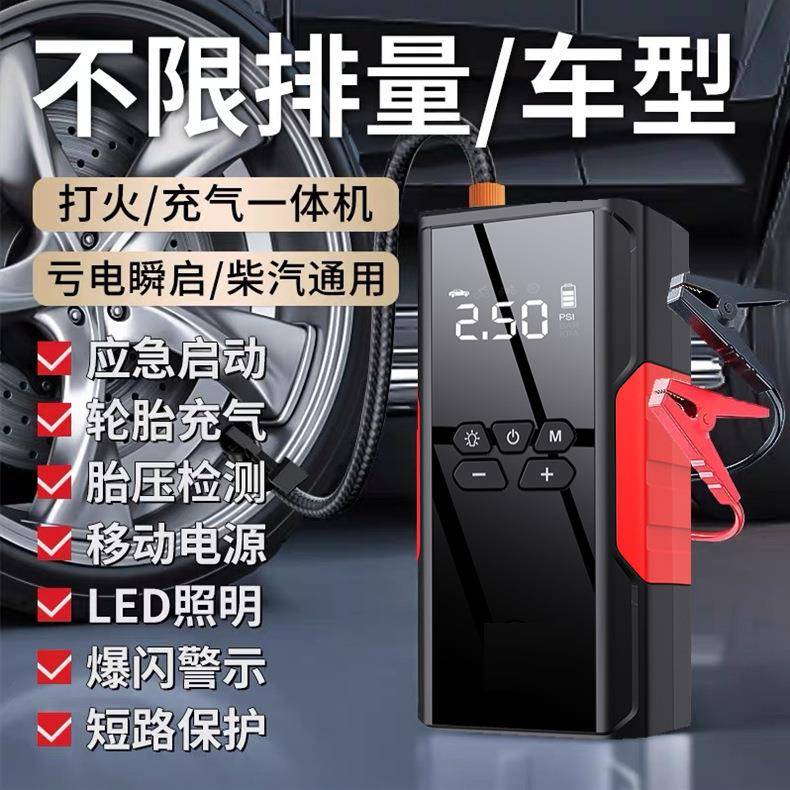 跨境多功一能宝汽车应急启动充气体机智能搭电车80载气泵数充码充