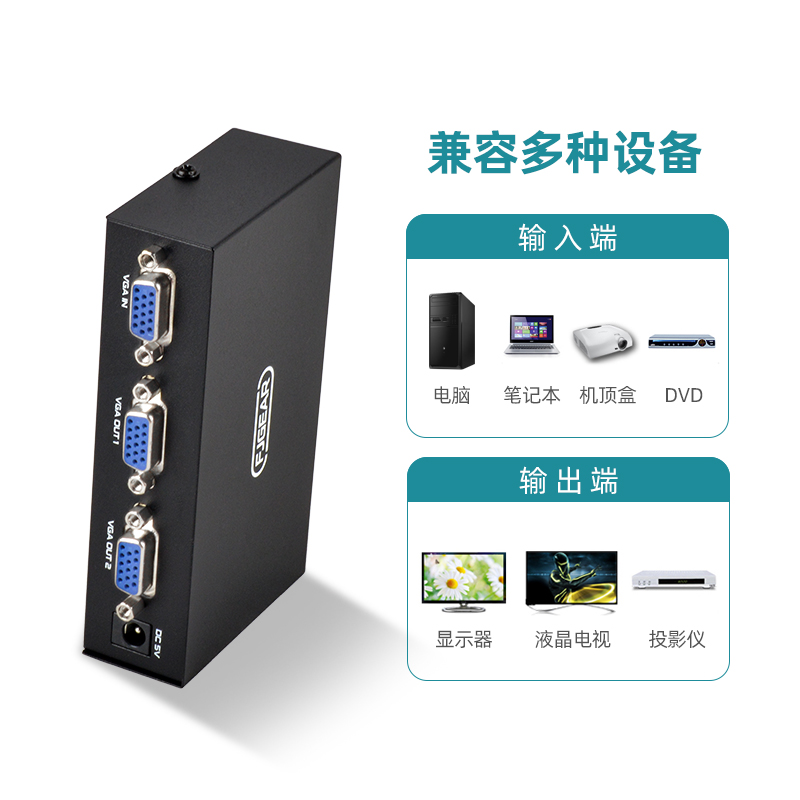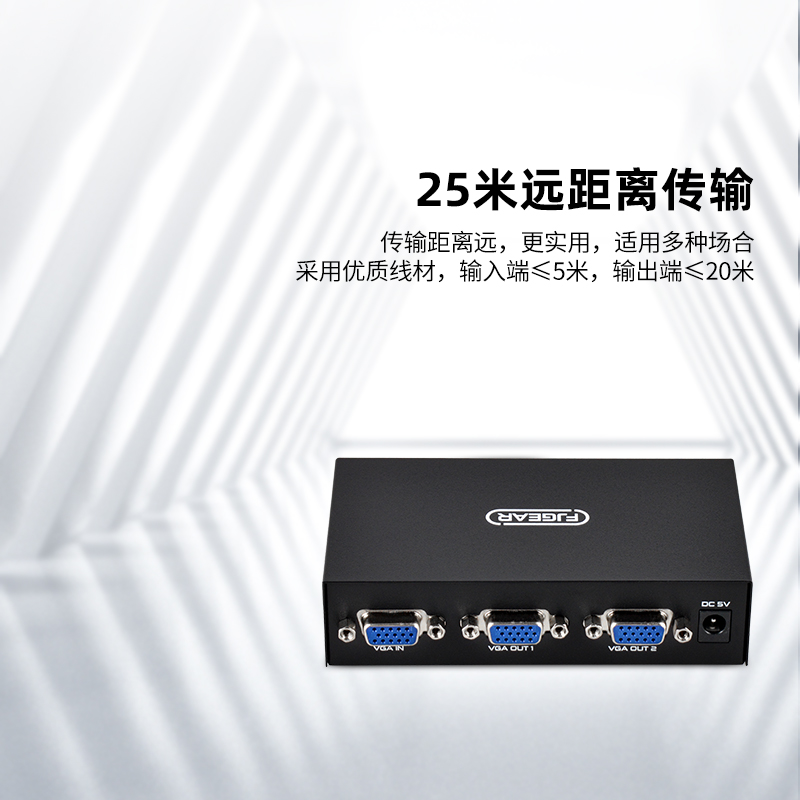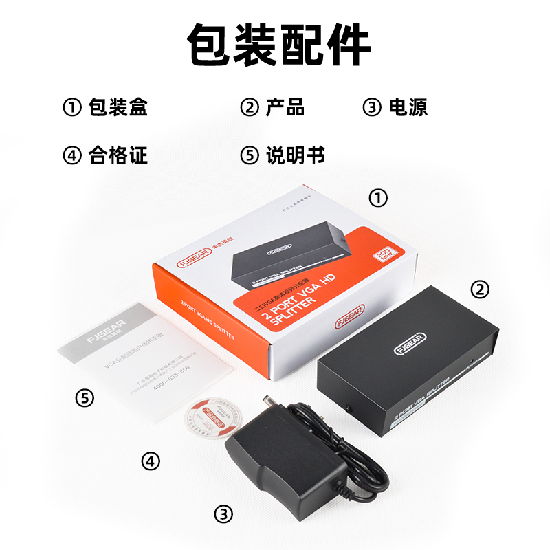 丰杰VGA分配器一分二VGA1进2出电脑连接显示分屏一主二同显248口