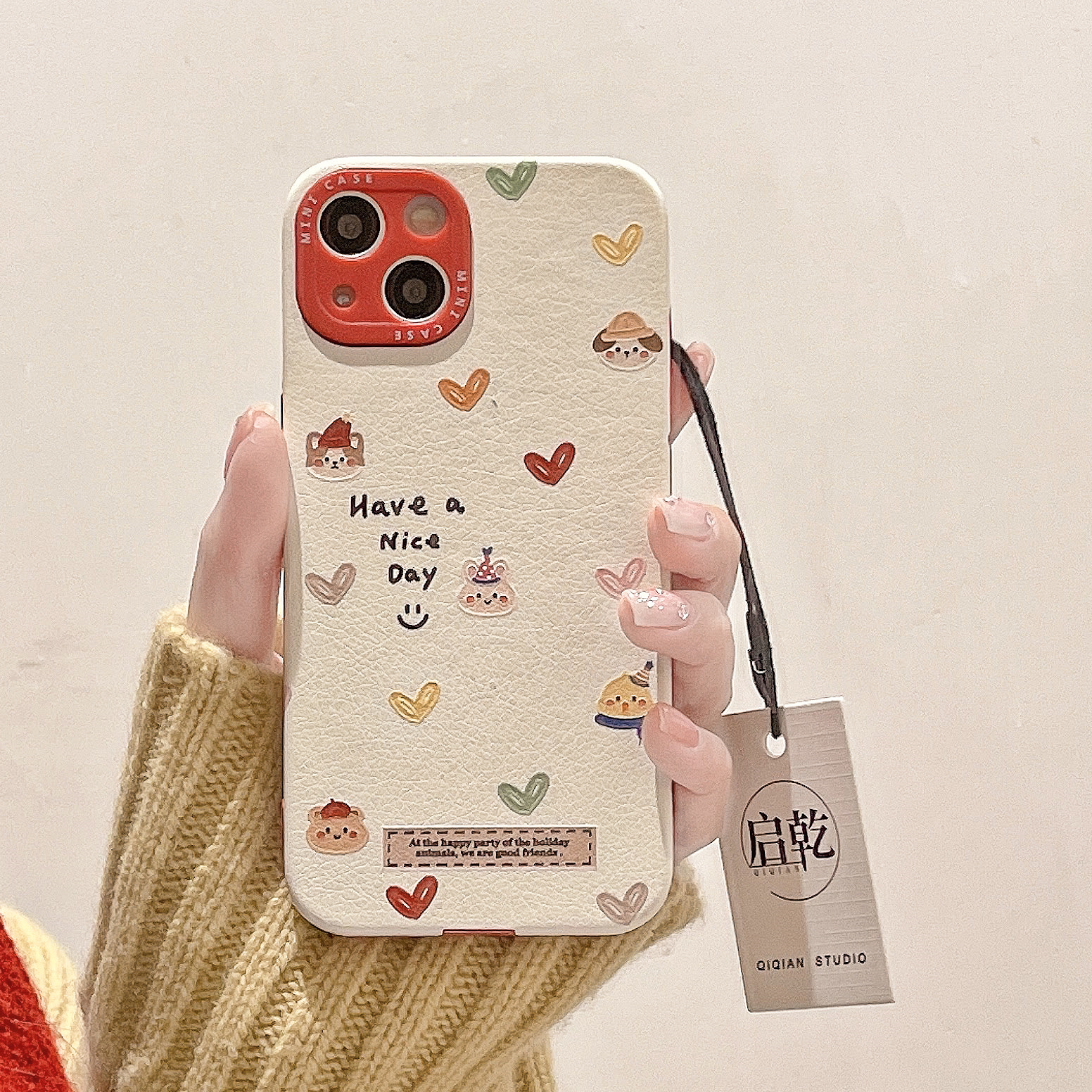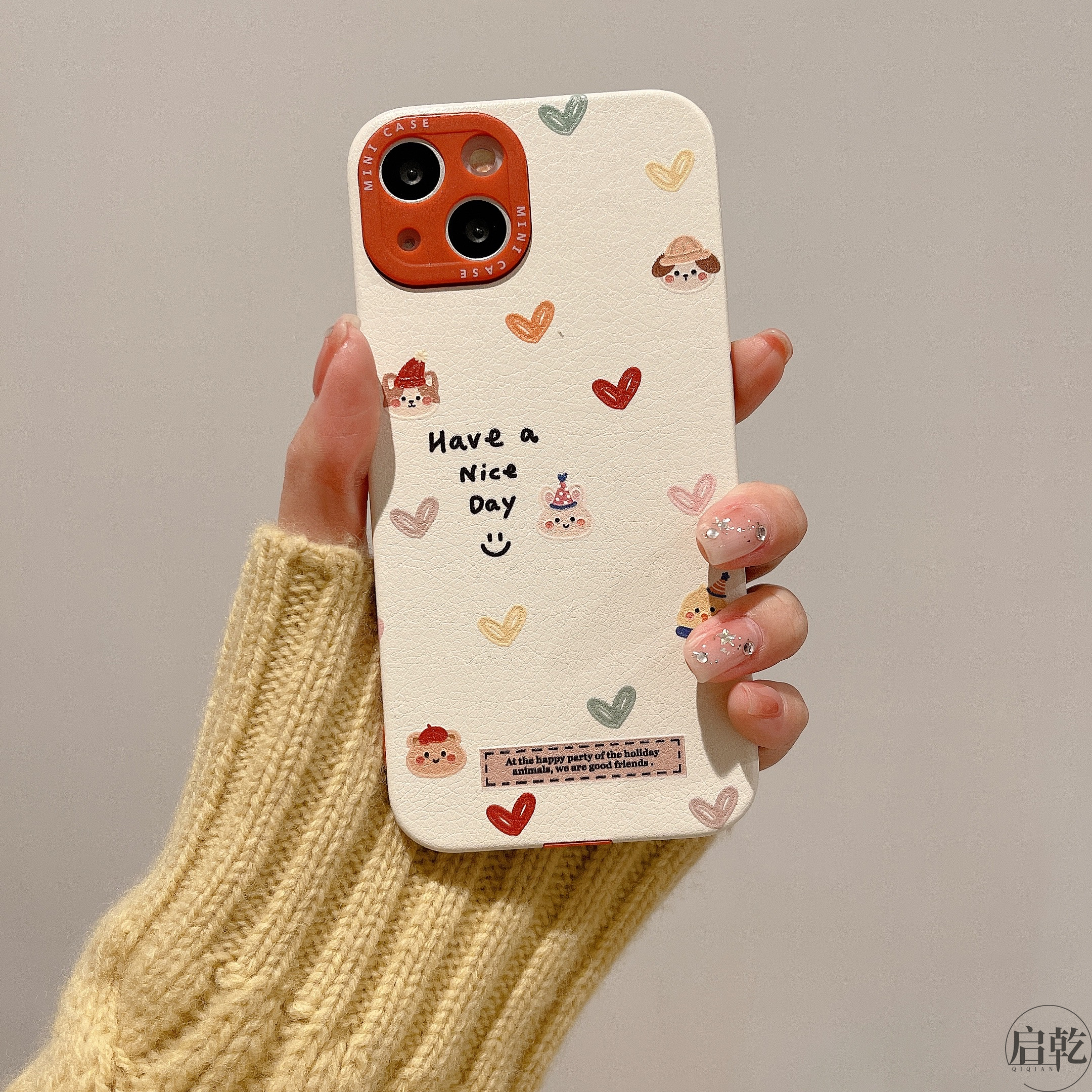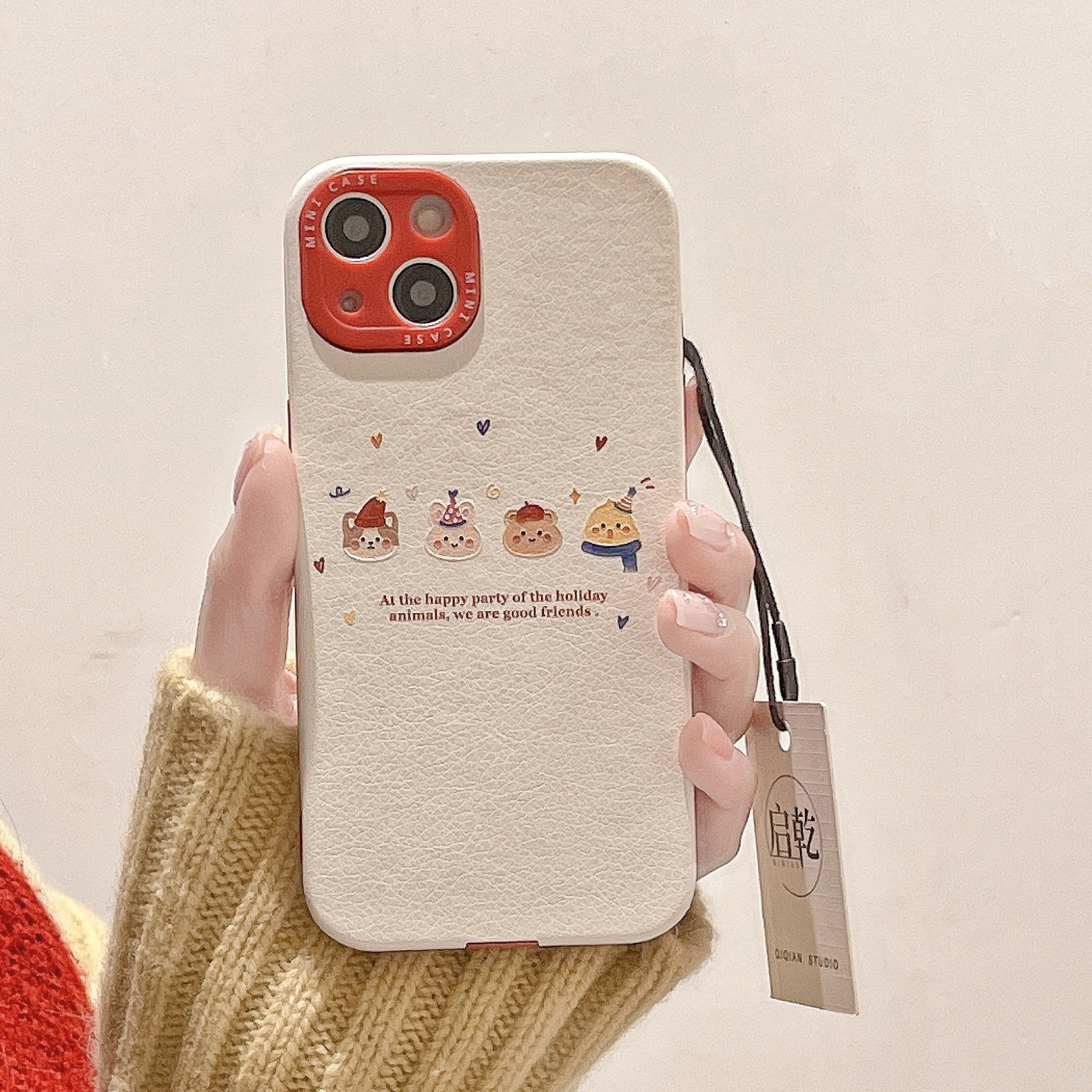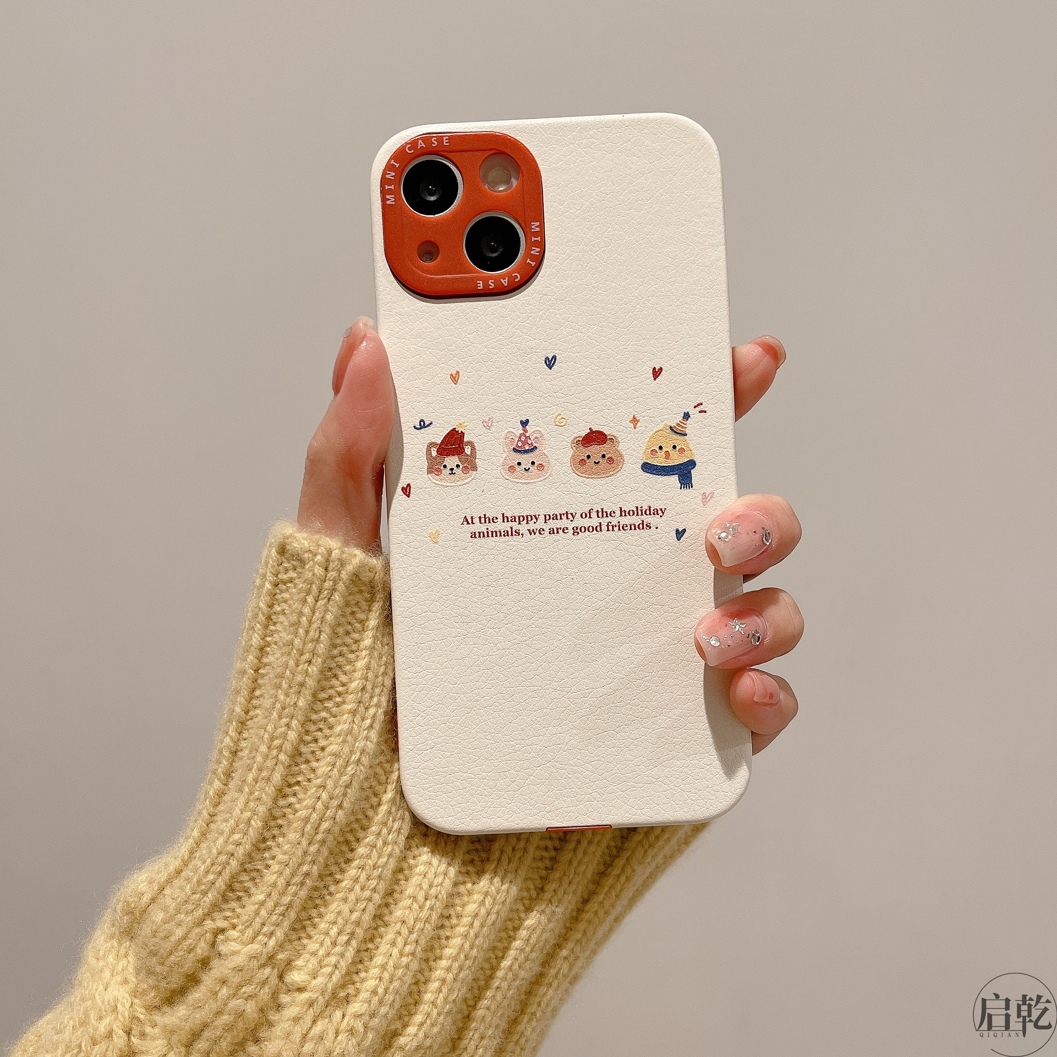 启乾 圣诞帽小熊兔子iPhone15手机壳适用苹果14/13promax皮质软壳12少女心11可爱卡通涂鸦小众新款情侣新年