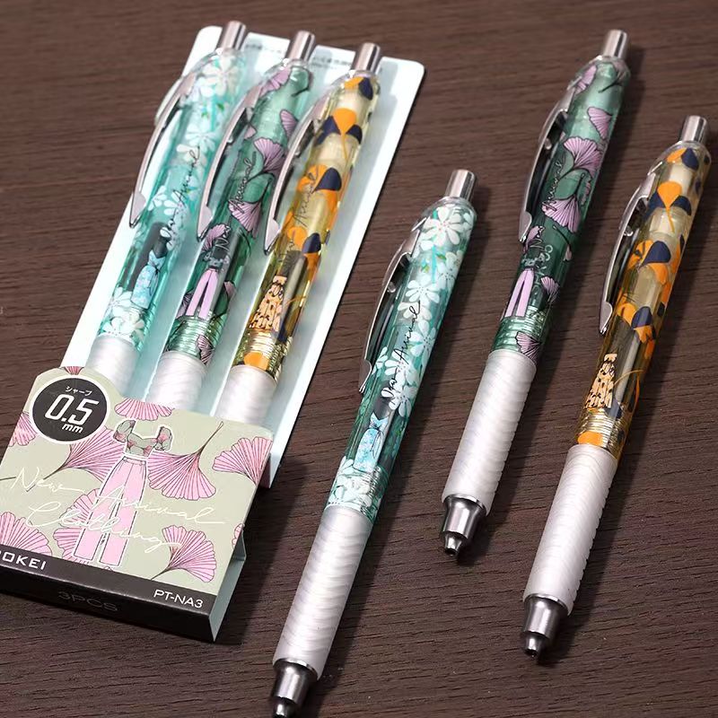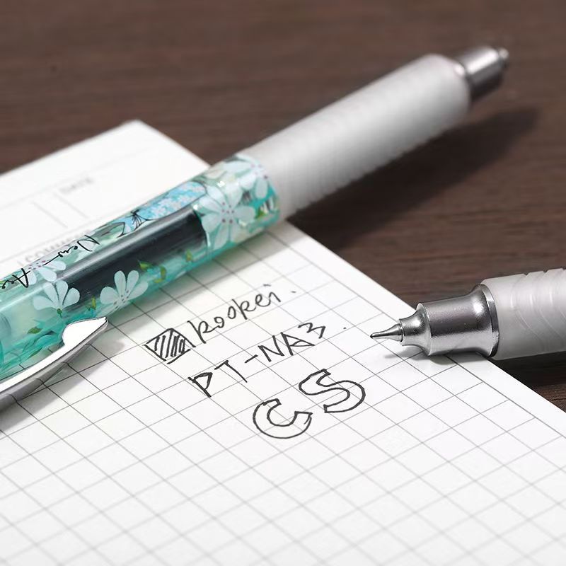 KOOKEI新装限定中性笔CS双珠低重心花卉透明笔杆少女心花色速干0.5mm按动学生考试刷题黑色水笔套装