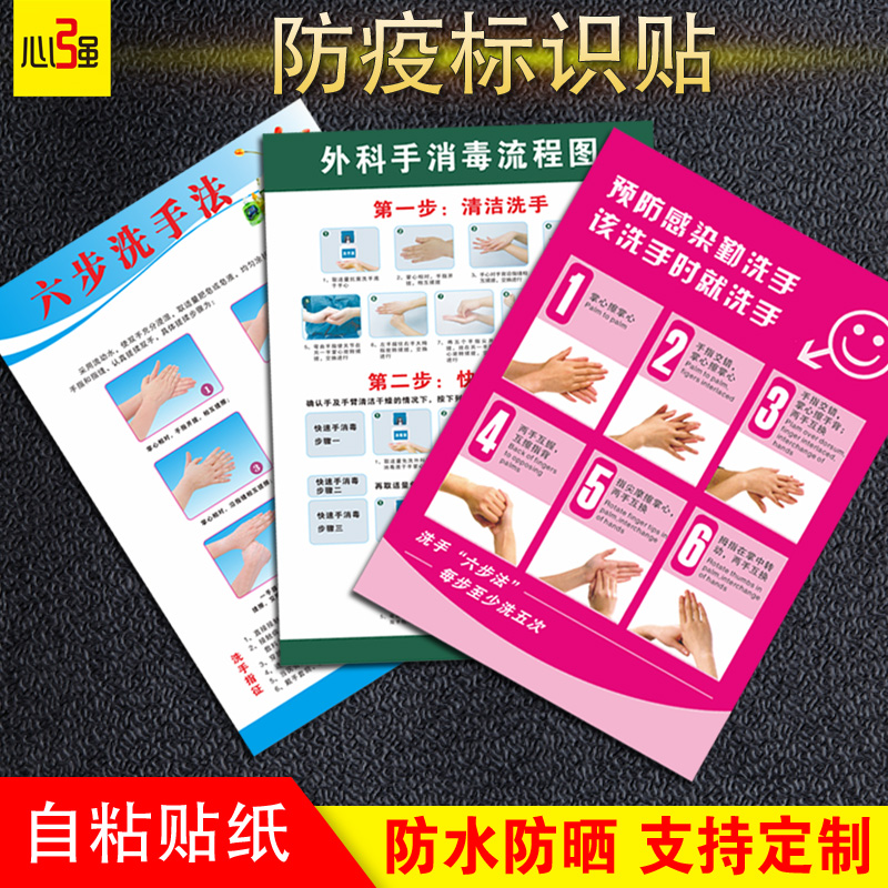 七步洗手法墙贴学校医院诊所标识贴纸校园学生疫情防控宣传画幼儿园中小学预防新冠海报标语注意卫生指南图