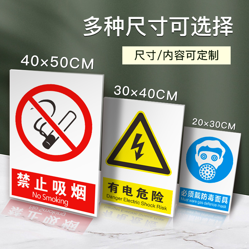安全标识牌仓库禁止烟火禁止吸烟危险勿近警示牌室外消火栓有电危险警示贴标志生产车间标牌标示工地标语定制