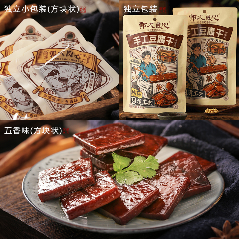 四川宜宾特产201g南溪採铃郭大良心豆腐干麻辣五香味绵软有嚼劲
