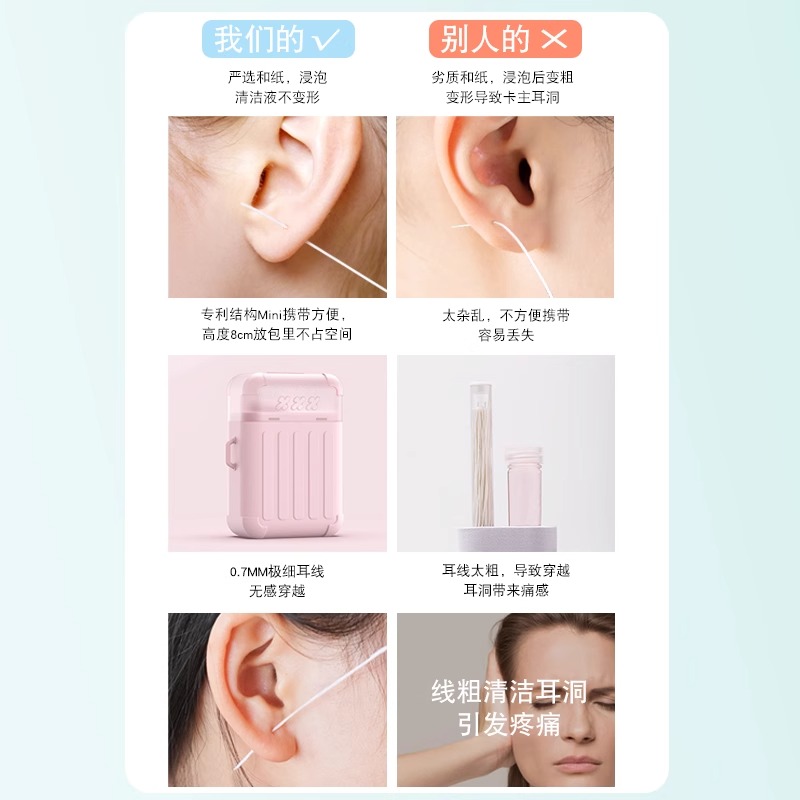 耳洞清洁线女超细清洁液祛异味防堵耳线卫生清理耳洞防堵线旅行箱
