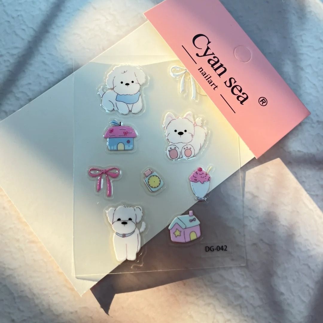 爆款软萌白色狗狗立体果冻贴纸高颜值ins风手账咕卡手机壳相机贴