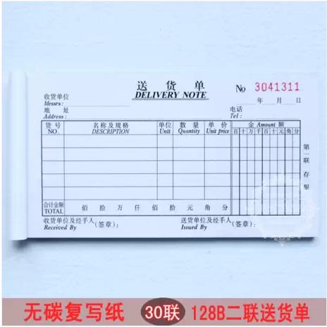 包邮 五邑生兴 48开 二联 三联 四联送货单 单栏 多栏可选 带垫板