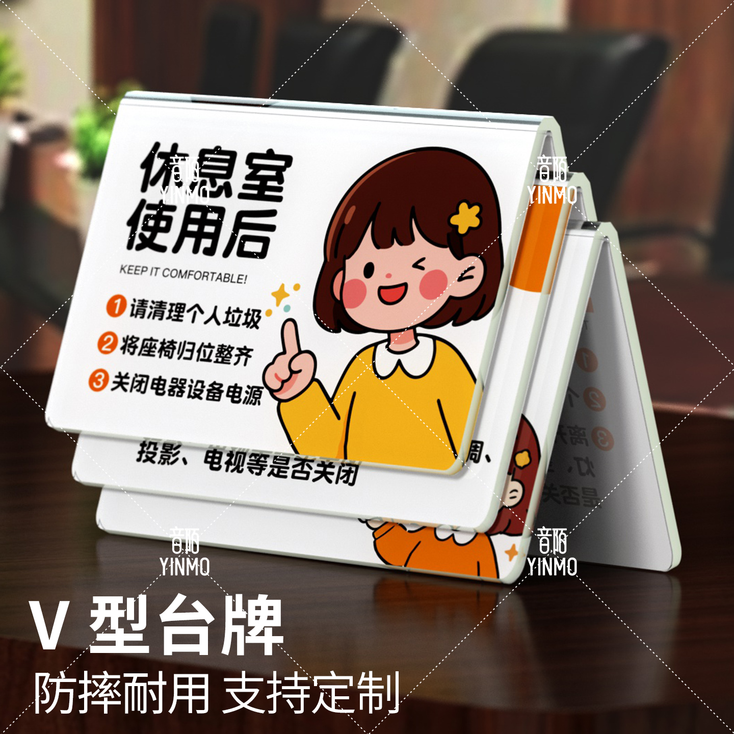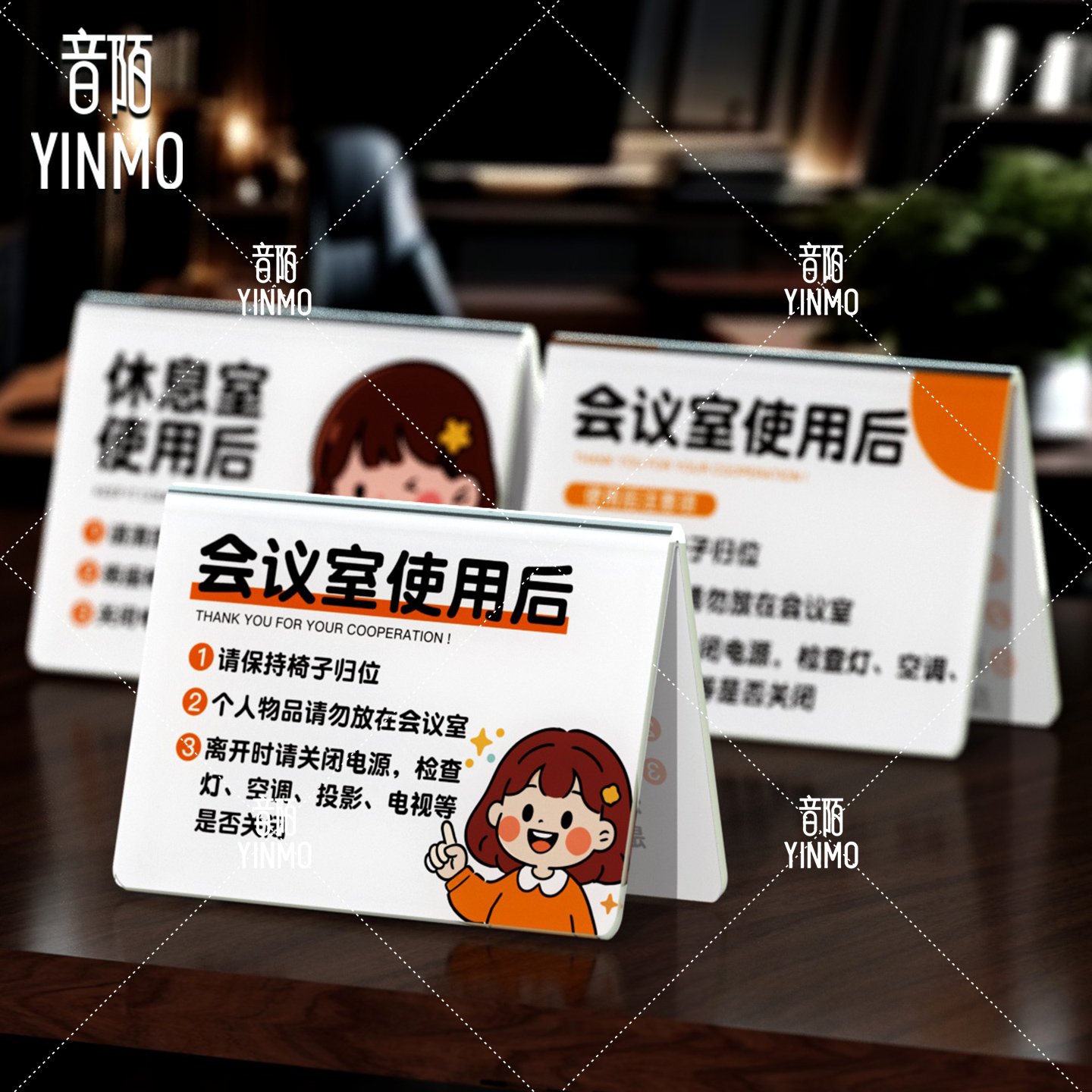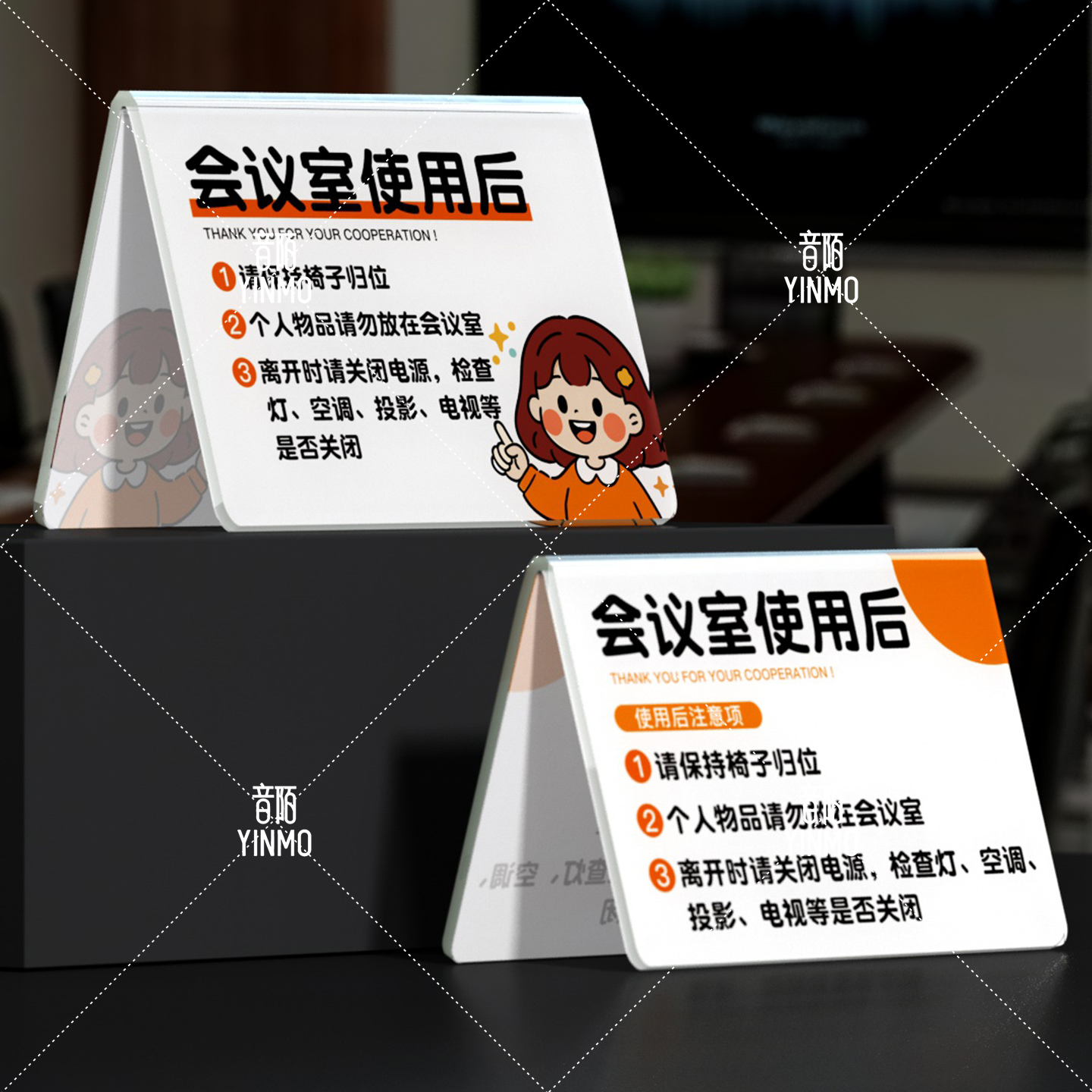 会议结束请将椅子归位亚克力标识牌办公室关闭设备关空调节约用电提示牌办公室使用后V型台牌温馨提示牌定制