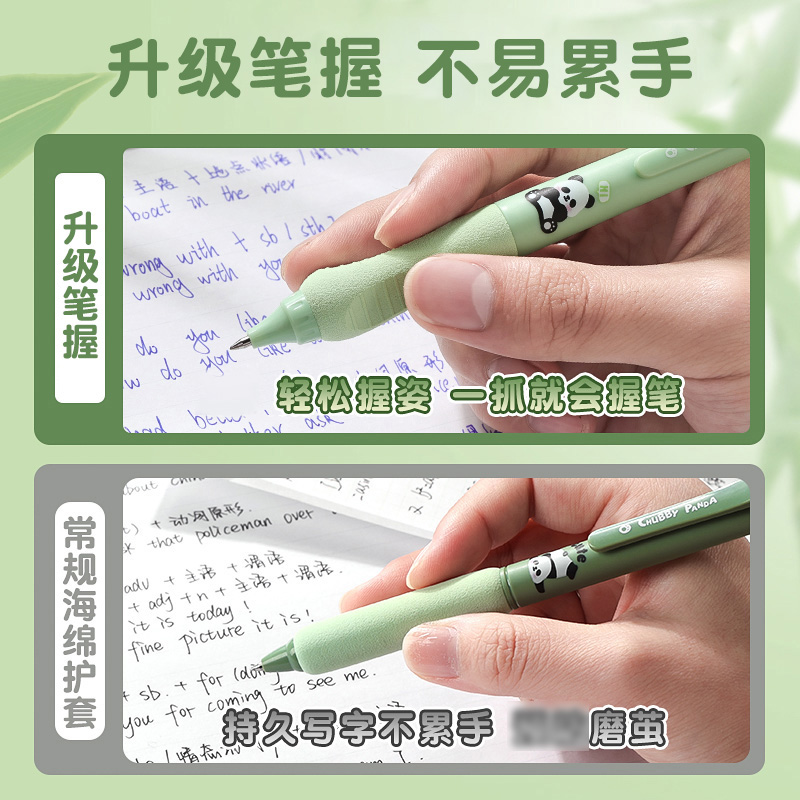 熊猫正姿可擦笔热敏按动式中性笔高颜值小学生专用魔力可擦蓝色刷题笔复写魔易擦黑色水笔芯替换芯晶蓝圆珠笔